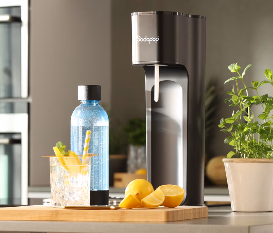 - Sodapop Wassersprudler Joy ECO matt schwarz, 1x 850-ml-PET-Flasche und 1x CO² Zylinder