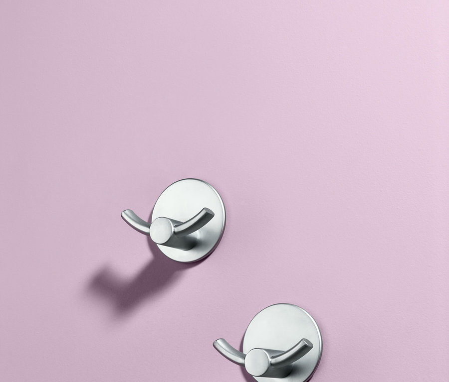 Die beiden Haken aus matt verchromtem Metall sind durch ihre selbstklebende Rückseite ruck, zuck montiert und halten sicher an der Wand. Sie sind feuchtigkeitsresistent, wodurch sie auch im Nassbereich einsetzbar sind und auch dort mit bis zu einem Kilogramm belastet werden können.