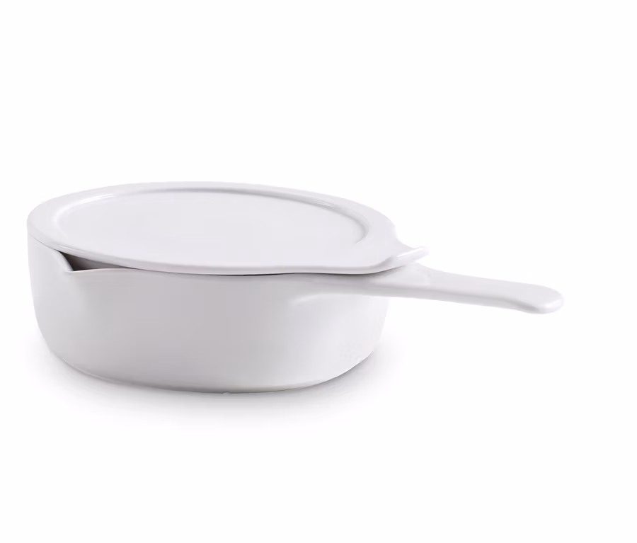 Der Küchenhelfer ist aus patentiertem inducTHERM®-Porzellan gefertigt – einem besonders robusten und langlebigen Material, das beim täglichen Einsatz mit seiner schnitt-, kratz- und abriebfesten Oberfläche überzeugen kann. Und mit seiner Vielseitigkeit: Die Kasserolle ist flammenfest sowie temperaturbeständig von –20 °C bis +400 °C und deckt damit alle möglichen Einsatzarten ab – von der Tiefkühltruhe über die Mikrowelle bis zum Grill, mit allen Herdarten inklusive Induktion kommt sie ohnehin zurecht.