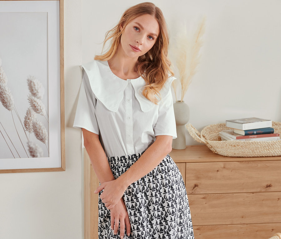- Rundhalsausschnitt mit trendigem Hemdkragen