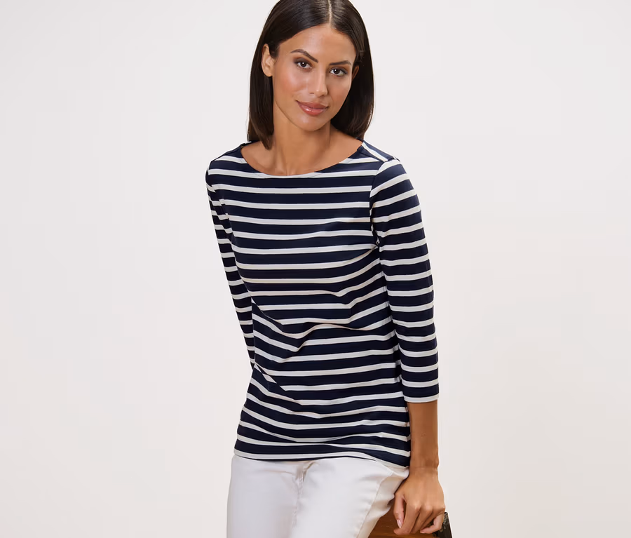 Gestreiftes Shirt mit 3/4-Arm, navy gestreift