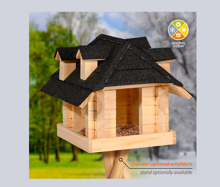 - Großes Design-Vogelfutterhaus mit Bitumendach