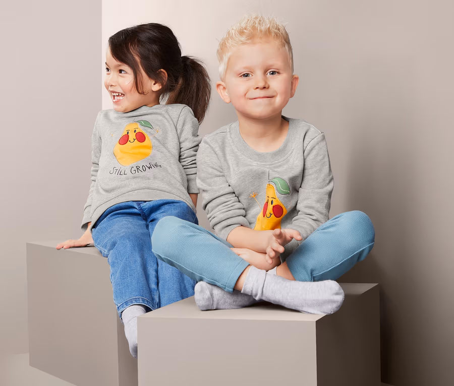 Dieser bequeme Sweatpullover hat alles, was es zum neuen Lieblingsteil im Kinderkleiderschrank braucht: Er ist komplett aus nachhaltig angebauter Baumwolle gefertigt und liegt dadurch jederzeit angenehm weich auf der Haut. Der Kinderpulli ist erfreulich formbeständig und hat an der Schulter eine Knopfleiste, mit der er sich besonders einfach an- und ausziehen lässt. Er hat bequeme, breite Bündchen an den Ärmelabschlüssen – und auf der Vorderseite grüßt eine liebevoll gestaltetet Birnenapplikation.
