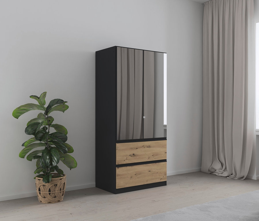 rauch Kleiderschrank »Joel«, 2 Türen, 2 Schubladen und Spiegel, grau/Eiche Artisan
