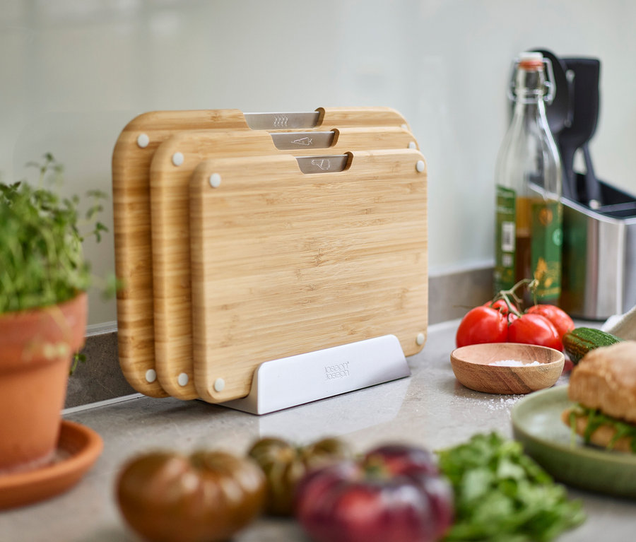 - Exklusives Paket beinhaltet 3-teiliges Schneidebrett-Set Nest™ Boards aus Bambus und 5-teiliges Messer-Set Elevate™ Steel mit Bambusblock