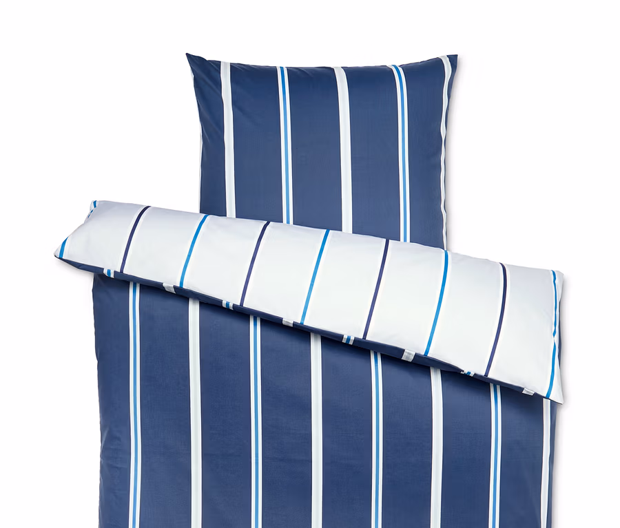 - 1 Seite dunkelbau gestreift, 1 Seite hellblau gestreift
