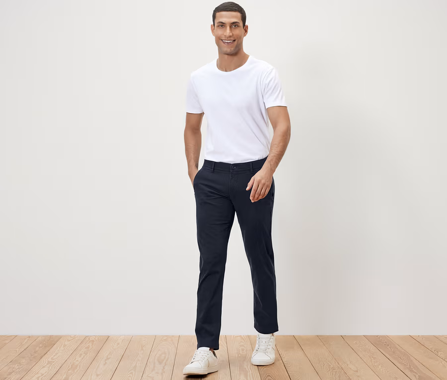 - 2 French-Pockets vorne, 2 paspelierte Gesäßtaschen mit Knopf