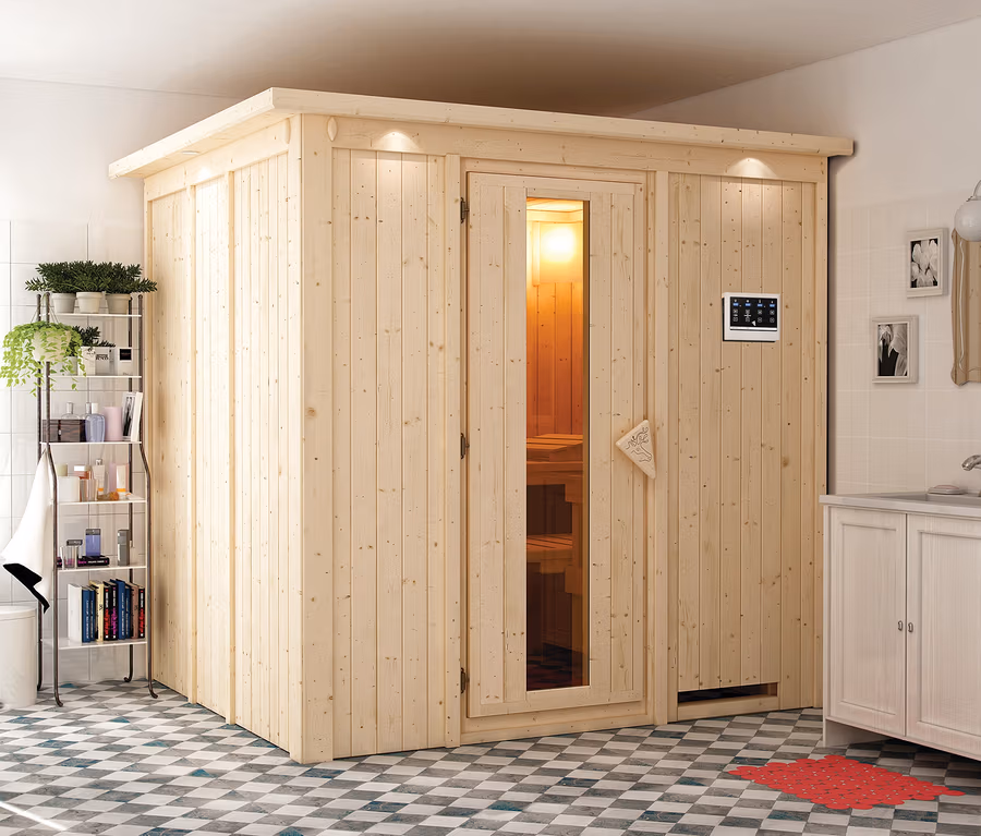 Ecksaunen sind platzsparend, da sie eine optimale Nutzung ungenutzter Raumecken ermöglichen.