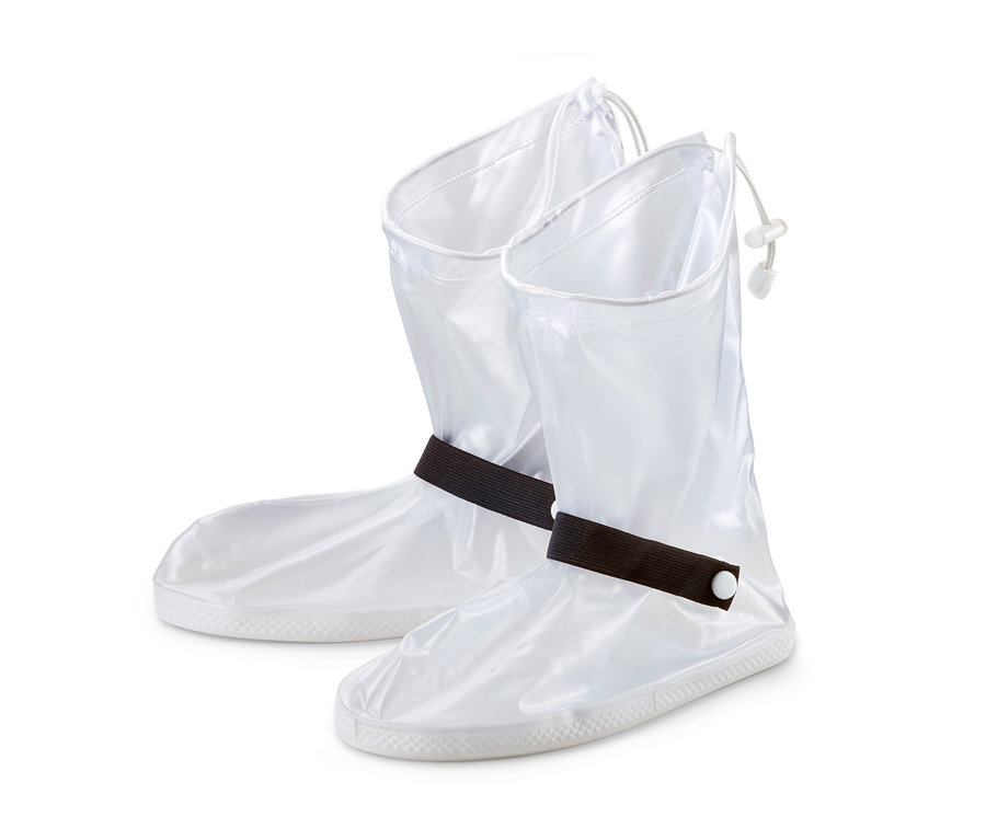 Wenn man vom Regen überrascht wird, hat man hoffentlich nicht gerade die Stoff- oder Wildlederschuhe an. Und wenn doch, hat man hoffentlich in Zukunft diese hilfreichen Überziehschuhe dabei. Sie sind aus wasserdichtem Kunststoff gefertigt, haben eine verstärkte Gummisohle und bieten den Schuhen zuverlässigenSchutz vor Schmutz, Matsch und Regen – ideal auch zum Radfahren.