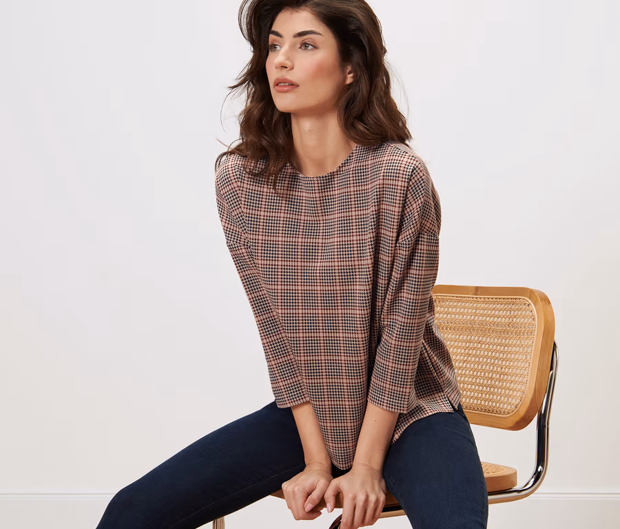 Sweatshirt mit 3/4-Arm, Hahnentritt