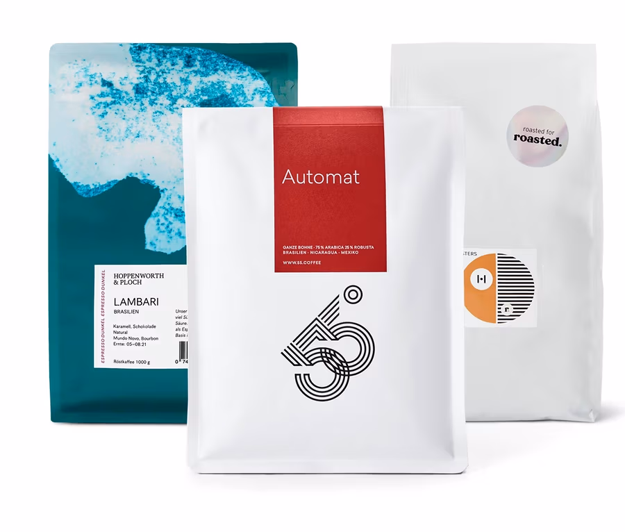 - Set beinhaltet 1x Co-Roast #1 von Hermetic, 1x Automat Caffè Crema von 55 Degrees, 1x Lambari Espresso von Hoppenworth & Ploch