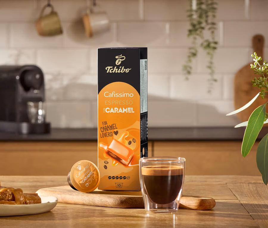 Espresso trifft natürliches Aroma: Unser neuer Espresso Caramel kombiniert ausgewogenen Espressogenuss mit einer feinen Sahne-Karamellnote und sorgt so für ein außergewöhnliches Geschmackserlebnis.
